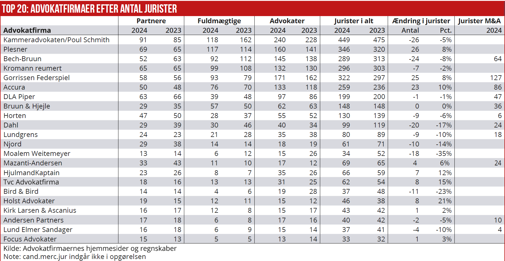 Målt på antal jurister er en af årets største vindere Accura, som efter års hæsblæsende ridt nu er landets sjettestørste advokatfirma med 259 jurister ansat, heraf 50 partnere.