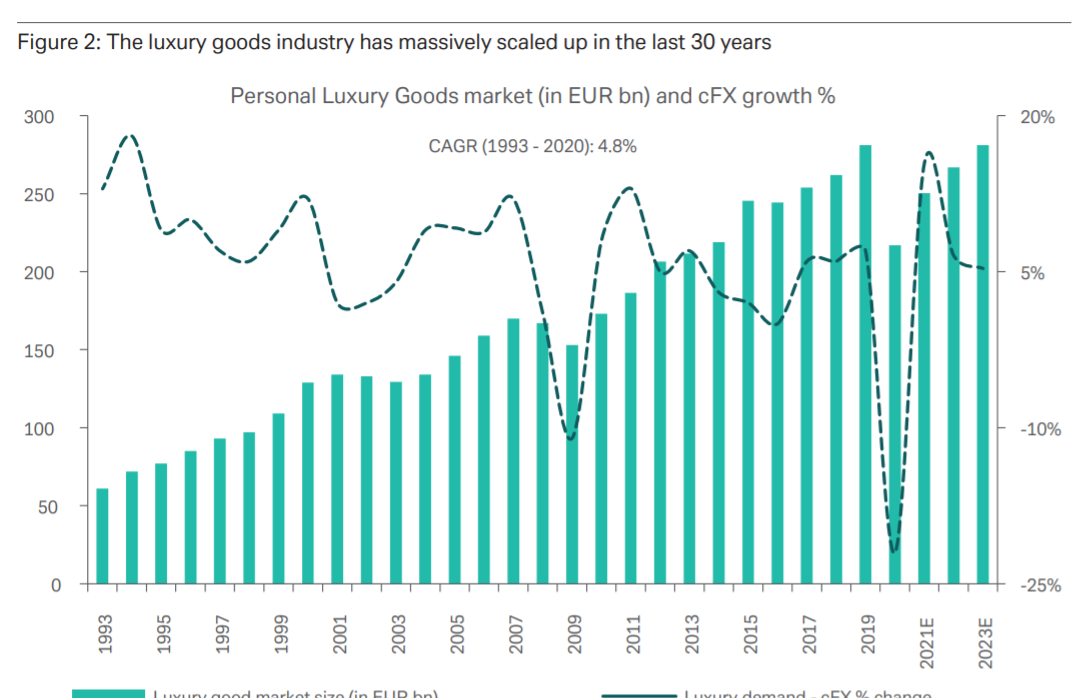 Deutsche Bank er sikker på én tendens: Sustainability-revolutionen er begyndt. Miljøet og klimaet vil definere vores tid, og det er især de yngre forbrugere, som står bag. De vil omsætte deres holdninger i deres indkøb, og de vil vælge brands, der svarer til deres holdninger, også selv om det bliver dyrere for dem. Det vil gavne selskaber med en stærk ESG-profil, men især inden for luksusbranchen, og det vil gavne selskaber med en stærk social virksomhedsprofil (CSG). De bliver fremtidens vindere. Det får en række virkninger for virksomhederne: De bliver nødt til at have fuld kontrol over forsyningskæden for at sikre eksklusiviteten. Men det gør det muligt for virksomhederne at tage en højere priser.