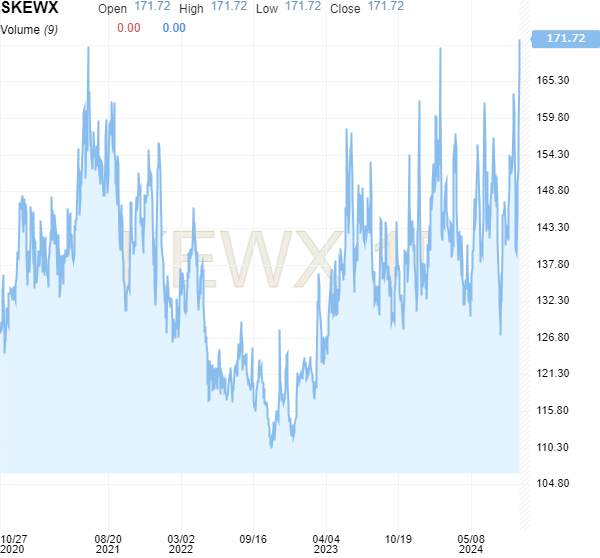 Grafik: Professionelle investorer beskytter sig nu mod et stor aktiekursfald i et omfang, som kun er set nogle få gange de seneste tre år. Nervøsiteten er ekstremt stor for, at der bag FED’s rentenedsættelse på en halv procent gemmer sig udsigten til en dyb amerikansk recession.