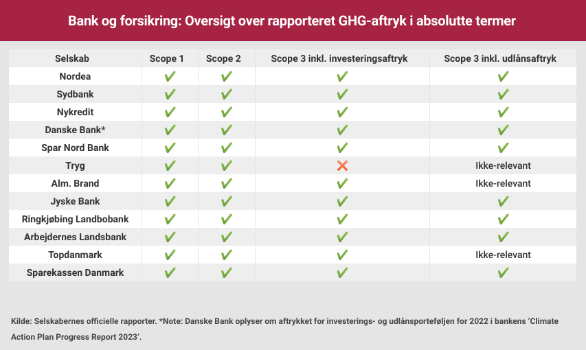 Ifølge den bredt anerkendte rapporteringsstandard udgivet af The Partnership for Carbon Accounting Financials (PCAF) skal finansielle institutioner, herunder banker og forsikringsselskaber, rapportere om GHG-aftrykket fra investeringer og udlån i absolutte termer: ”As a minimum, financial institutions shall measure the absolute GHG emissions resulting from loans and investments (scope 3 category 15 emissions) in the reporting year.”*