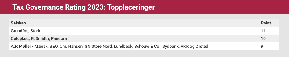 *Vi har i år strammet kravene til, hvornår virksomheder kan opnå point i målepunkt 2 vedr. aktiviteter i skattelylande. Man kan derfor ikke 1:1 sammenligne virksomheders pointscore i år i dette målepunkt med scoren i 2022.
