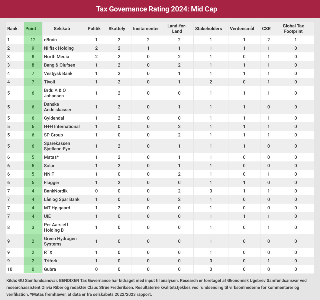 Mere om hvordan mid cap og large cap generelt klarer sig i Økonomisk Ugebrev Tax Governance Rating 2024 finder her.